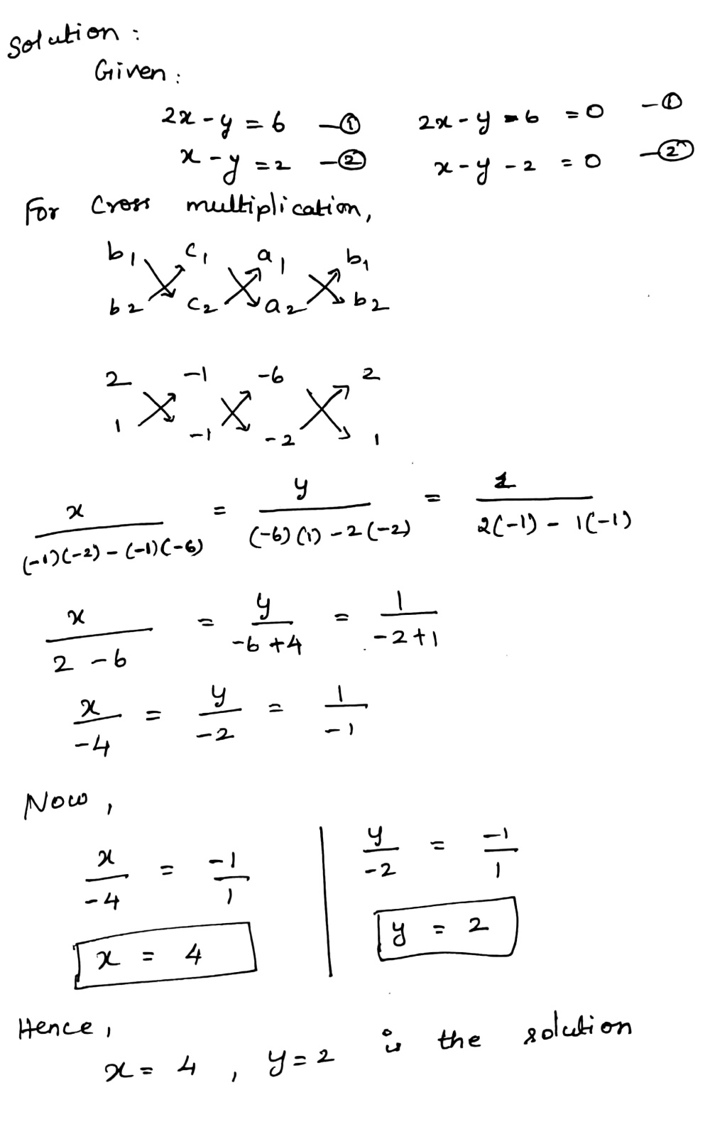 Solve Of The Following Pairs Of Linear Equations By Using Cross Multiplication Method 2x Y 6 X Y 2 Snapsolve